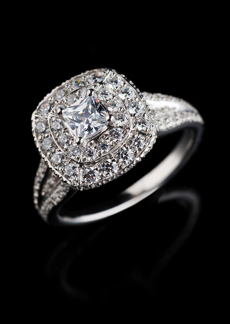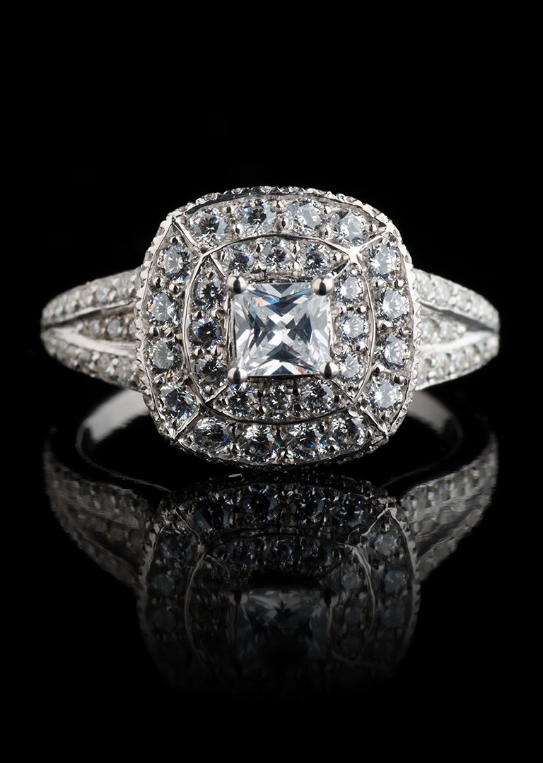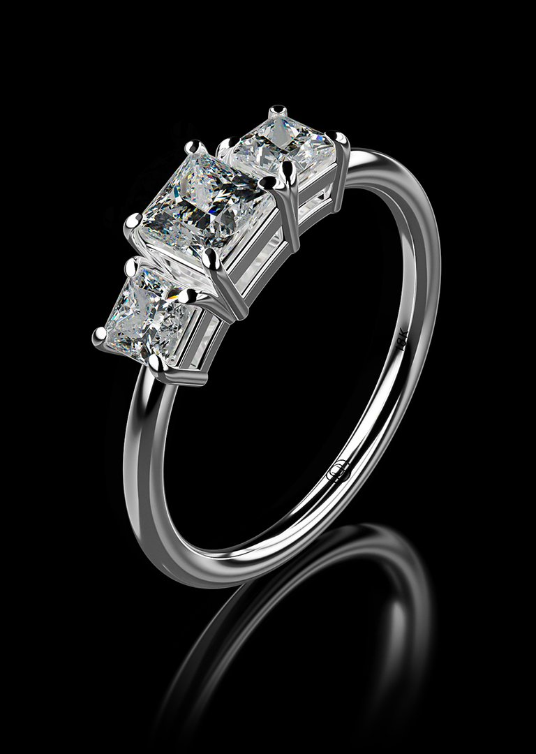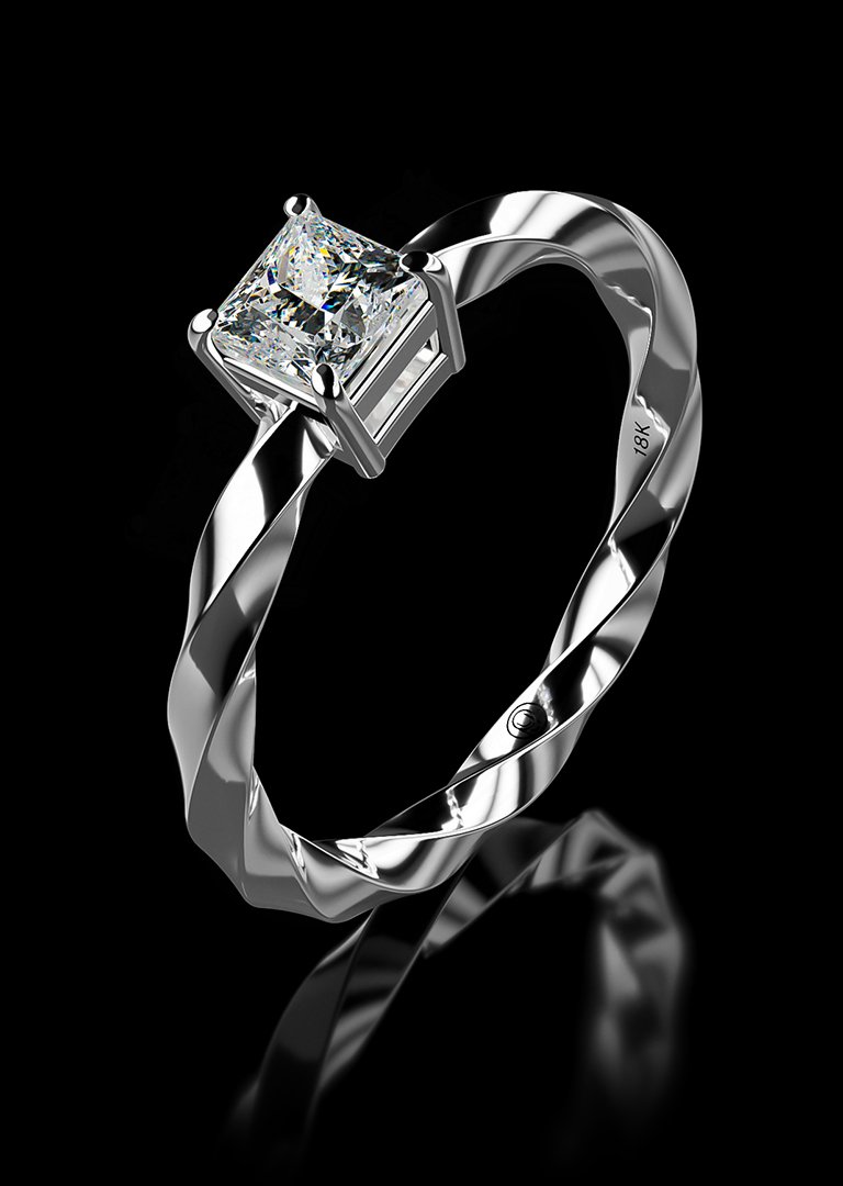 Ouro Branco 18k com diamantes lapidação princess e brilhante