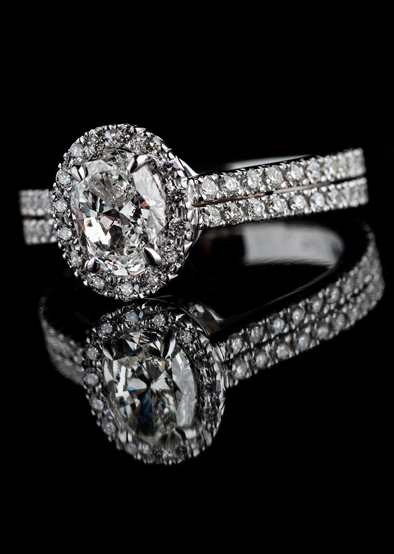 Ouro Branco 18k com diamantes lapidação oval e brilhante