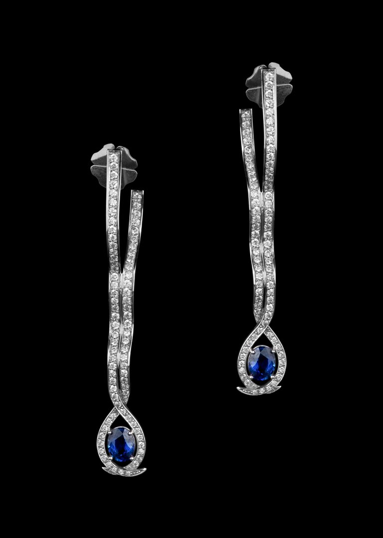 Ouro Branco 18k com Safira Azul e Diamantes