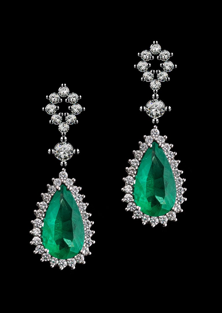 Ouro Branco 18k com Diamantes e Esmeralda