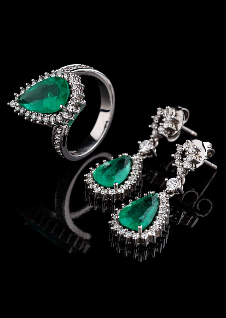 Ouro Branco 18k com esmeraldas e diamantes